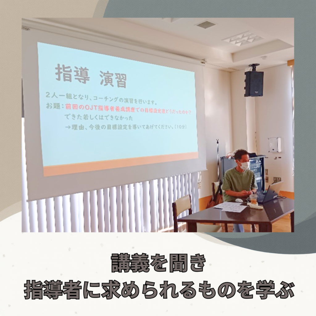 全職員が基本ケアを習得できるように、OJT指導者養成講座フォローアップ研修をおこないました。