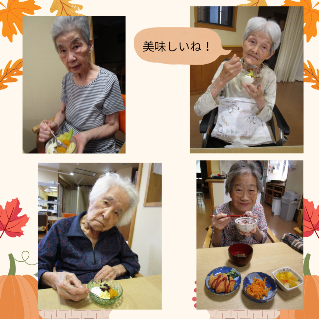 また、職員手作りのおやつはとても好評で「美味しいね」「毎日食べたいね」と皆さんあっという間に召し上がっていました![]()