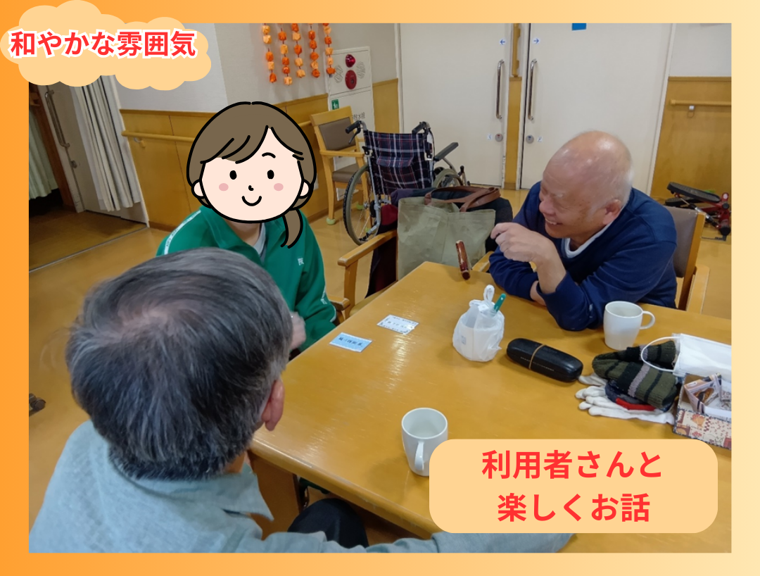 利用者さんのお話を聞いていただいたり、一緒に体を動かしたりと、積極的に交流をしてくれました。